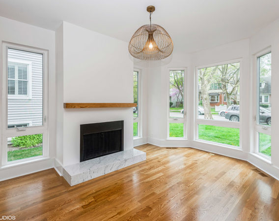 Located in the Willard School district, this northwest Evanston home, boasts 3-stories, 4-bedrooms, 3.5 bathrooms and a coach house. The home represents an exciting mix of sophistication, minimalism and creative finishes to achieve the utmost distinctiveness and beauty. Open and airy, this restored farmhouse features a crisp white interior reminiscent of the Mediterranean, interspersed with strong charcoal-colored accent details, refined geometric wallpaper, brass and black fixtures and natural wood finishes.